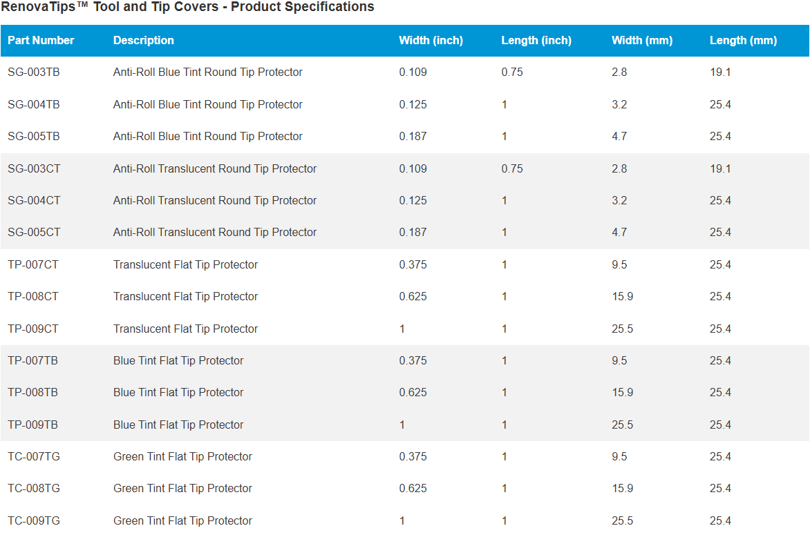 | TP-007TB | Blue Tint Flat Tip Protector | 0.375 | 1 | 9.5 | 25.4 |
